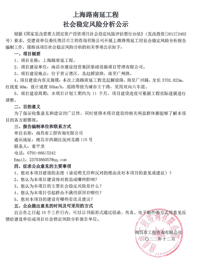 上海路南延工程社會(huì)穩(wěn)定風(fēng)險(xiǎn)分析公示