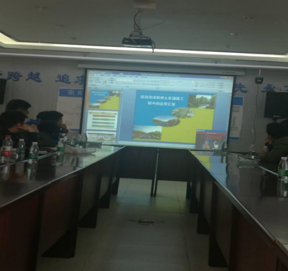 現(xiàn)場聽取介紹昌九快速路工程概況以及目前的施工技術特點、難點及進展情況;現(xiàn)場觀看了從泡沫混泥土施工工藝、大型橋梁的梁片、張拉、運輸、架梁等方面的效果視頻及深入細致的講解,工程的體量和技術難度讓人震撼。大家在認真觀看視頻后,不時地提出問題請教,項目總監(jiān)都一一進行了解答。