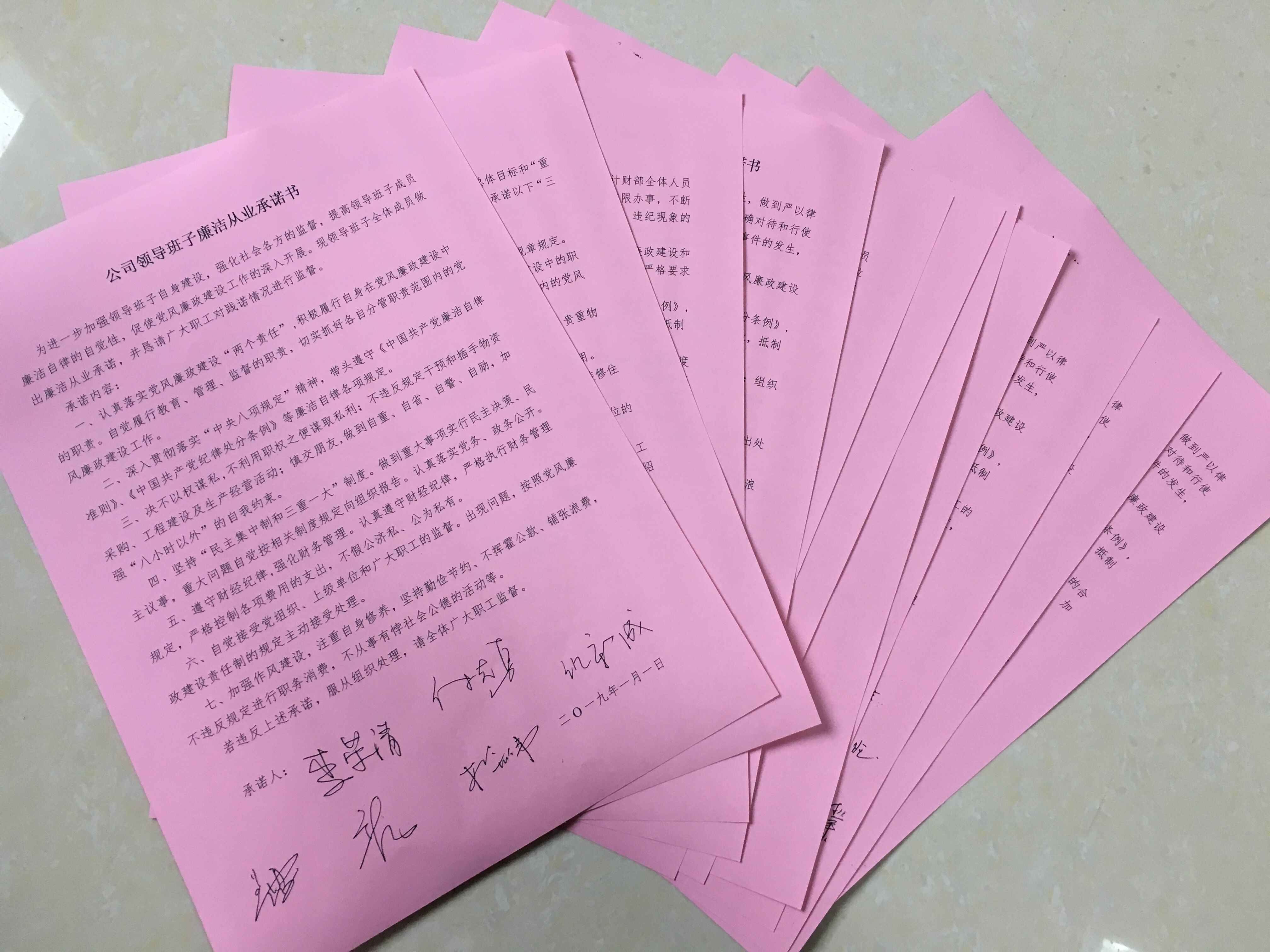 為進(jìn)一步強(qiáng)化黨風(fēng)廉政建設(shè),增強(qiáng)廉潔自律的意識(shí)與自覺(jué)性,高速公司紀(jì)檢監(jiān)察室組織公司領(lǐng)導(dǎo)班子、各部室、站所負(fù)責(zé)人分別簽訂了2019年黨風(fēng)廉政建設(shè)責(zé)任書(shū),共11份,責(zé)任書(shū)把反腐工作與各部室自身工作相結(jié)合,從遵守規(guī)章條例、加強(qiáng)作風(fēng)建設(shè)、嚴(yán)明紀(jì)律規(guī)矩、管理監(jiān)督職責(zé)等方面內(nèi)容,進(jìn)一步明確責(zé)任,做到一級(jí)抓一級(jí),層層抓落實(shí)。
