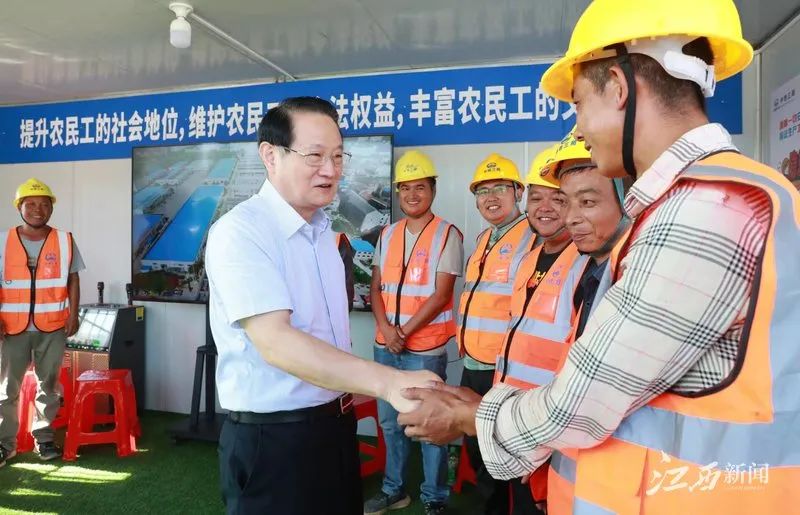 赤日炎炎,南昌洪騰高架項目現(xiàn)場一派繁忙,工程車來回進行路面瀝青攤鋪,工人們正在揮汗如雨作業(yè)。易煉紅來到工地現(xiàn)場,向一線建設(shè)者們致以問候,感謝他們?yōu)槟喜鞘薪ㄔO(shè)作出的貢獻。他說,南昌是英雄城。大家來自全國各地,頂著烈日、不懼“烤”驗,揮灑的每一滴汗水、付出的每一份辛勤都是在為英雄城南昌的建設(shè)發(fā)展添油助力,你們是光榮的勞動者,也是在高溫下戰(zhàn)斗的“英雄”。易煉紅反復(fù)叮囑大家要保重身體,采取有效措施防暑降溫,注意自我防護、勞逸結(jié)合,以健康的身體投入緊張的工作。在現(xiàn)場,易煉紅還聽取了項目有關(guān)情況介紹,要求在確保質(zhì)量和安全的前提下,加快推進項目建設(shè),確保早日建成通車。