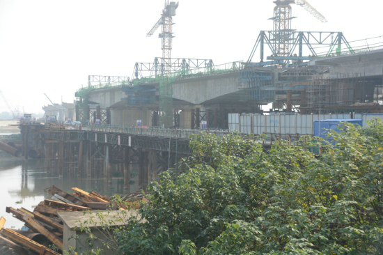 南環(huán)高架橋撫河段懸灌梁的順利合攏,標志著項目上部梁體施工取得階段性勝利,現(xiàn)場施工正如火如荼展開。