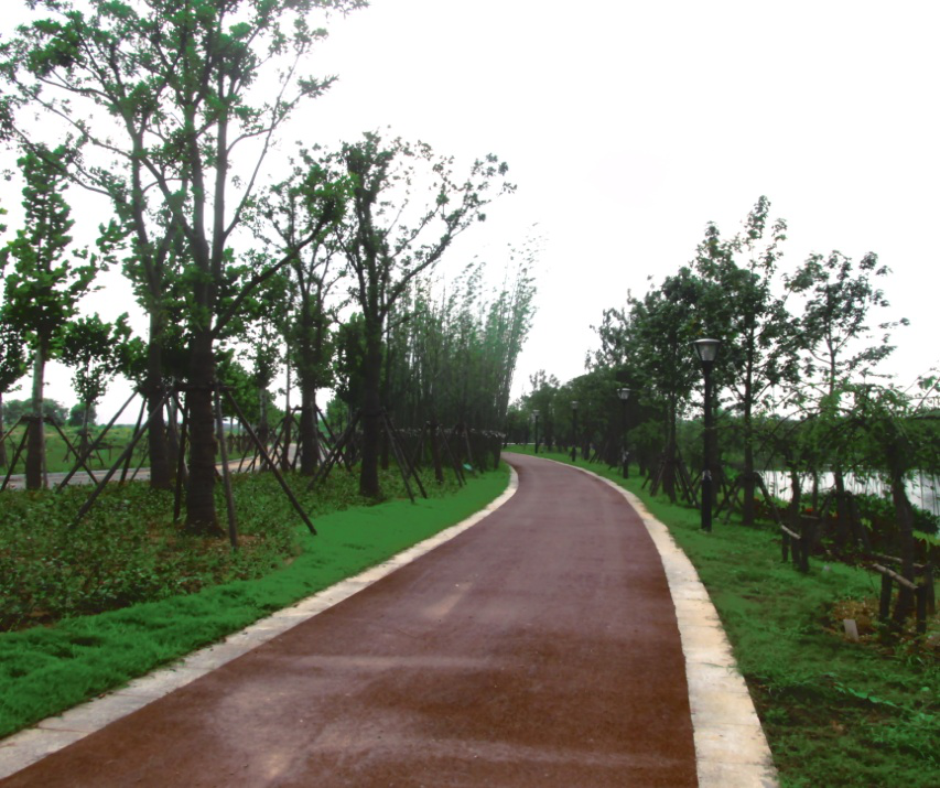 目前大象湖濕地公園景觀建設(shè)工程已基本完成,目前正進行三米、五米路瀝青攤鋪階段。